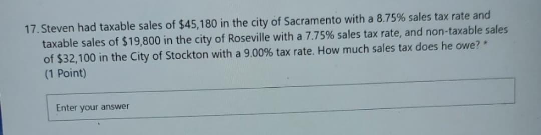 Solved 17 Steven Had Taxable Sales Of 45 180 In The City Chegg Com